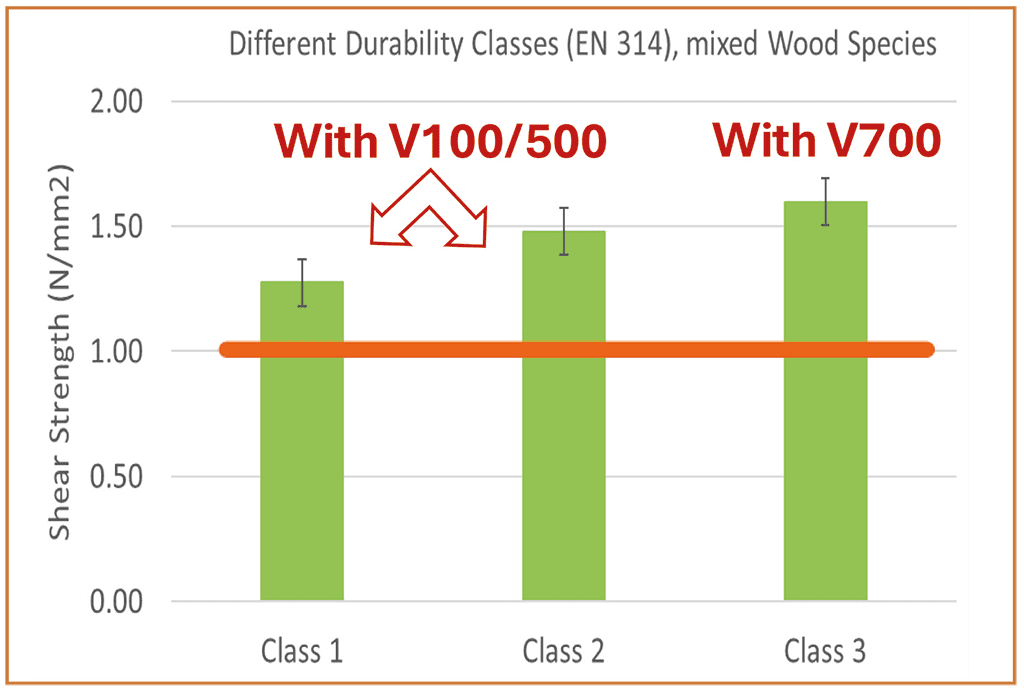 Il prodotto assicura inoltre affidabilità in ambienti ad alta umidità e in presenza di variabili livelli di umidità delle impiallacciature, garantendo una qualità di incollaggio uniforme e duratura.