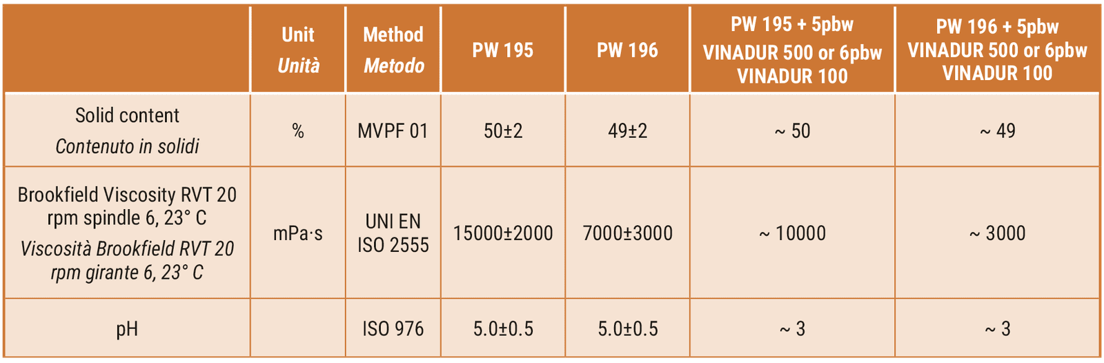 LA SOLUZIONE PROPOSTA È UNA GAMMA DI PRODOTTI SVILUPPATI DA VINAVIL: VINAVIL PW