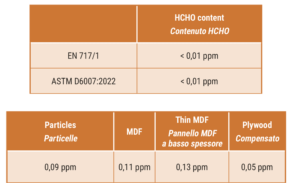 Queste formulazioni garantiscono prestazioni a basse emissioni, offrendo un’alternativa sicura e non tossica rispetto ai tradizionali adesivi a base di urea-formaldeide (UF).