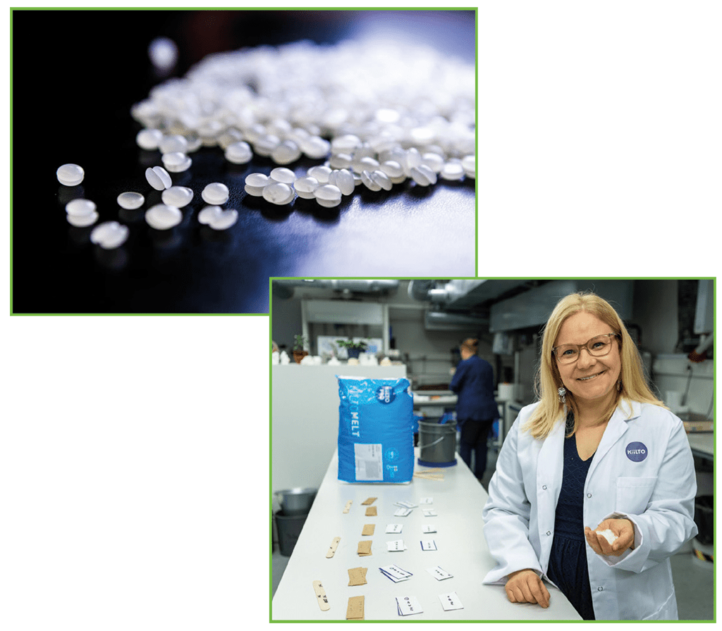 La gamma di adesivi bio-based di Kiilto comprende già gli adesivi in dispersione Pro Pack Eco e il primo hot melt biodegradabile al mondo, Kiilto Biomelt. Kiiltomelt EVO R 20 amplia ulteriormente il portfolio, offrendo il più alto contenuto bio-based finora disponibile.