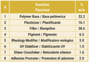 Questo approccio vuole dimostrare il concept e illustrare i vantaggi potenziali del percorso dall’attivazione all’imballaggio finale. Per dimostrare la fattibilità dell’attivazione post-produzione (su richiesta) con Thixatrol® AS 8053, è stata seleziona una formulazione di sigillante polimerico a modificazione silanica come sistema modello (Tab. 1).
