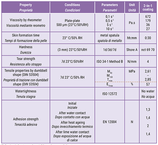 The 2-in-1 coating was evaluated according to various standards, as shown in Table 3.